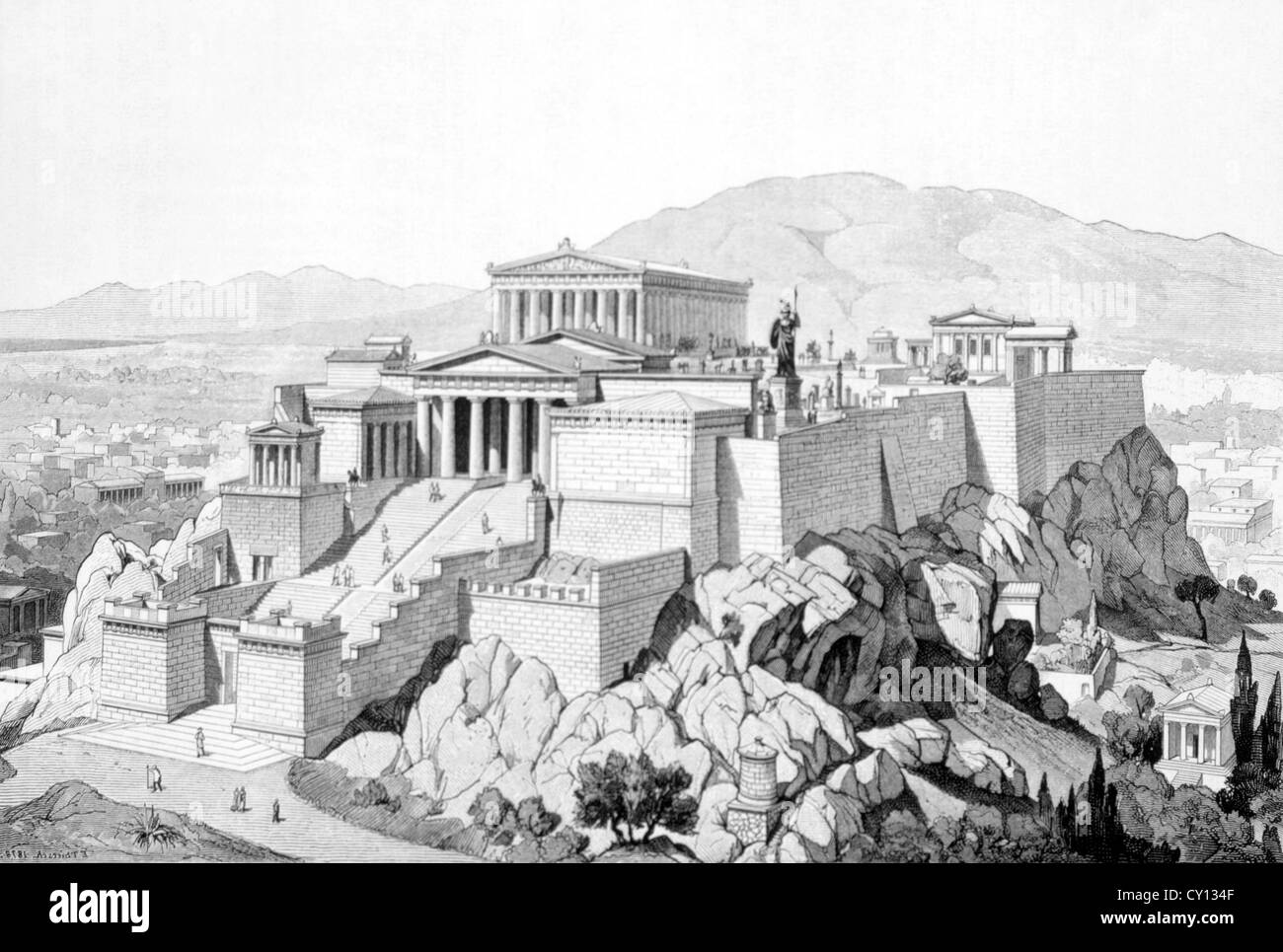 La Acropolis Atenas Grecia El Dibujo Por Friedrich Thiersch Circa 10 Fotografia De Stock Alamy