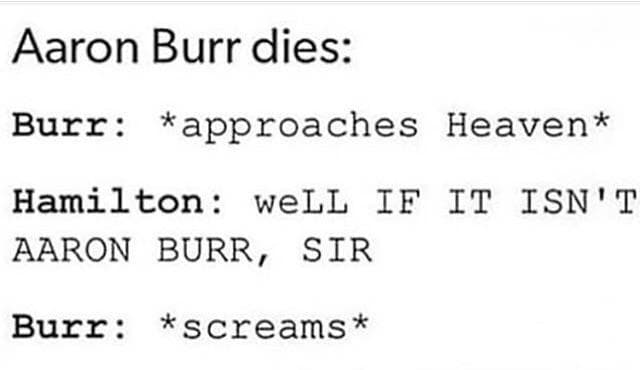 ron Burr Dies Burr Approaches Heaven Hamilton Well If It Isn T ron Burr Sir Burr Screams S I R Meme On Me Me