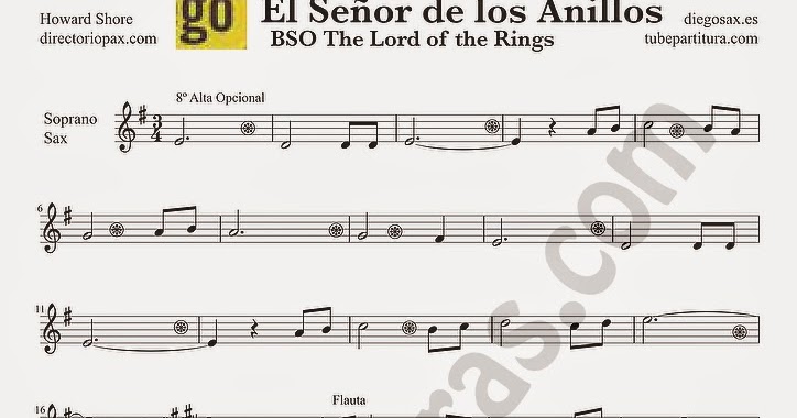 Diegosax The Lord Of The Rings De Howard Shore Partitura De El Senor De Los Anillos Para Flauta Saxofon Trompeta Clarinete Violin Saxo Tenor Trombon Tuba Viola Chelo Violin Oboe Trompa Corno