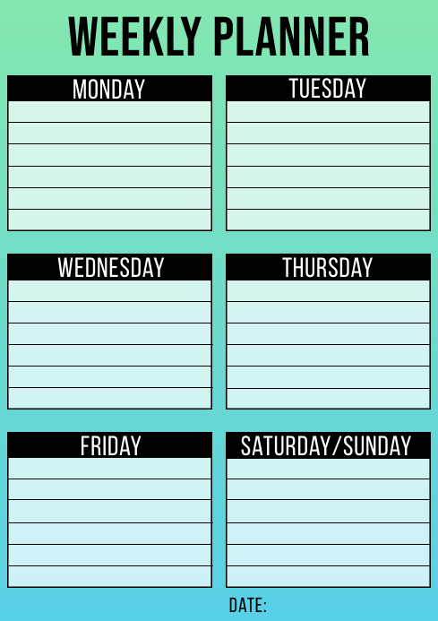 Plantilla De Planificador Semanal Imprimible Gradiente Postermywall