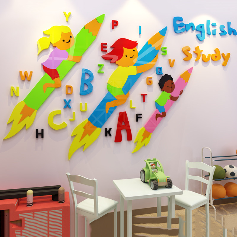 Children S English Classroom Decoration Wall Stickers 3d Kindergarten Early Education Training Class Wall Decoration Children S Room