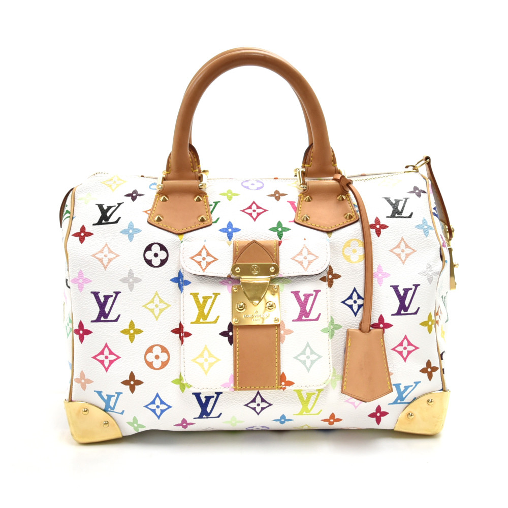 Louis Vuitton Speedy 30 White Multicolor Monogram Canvas City Handbag Leprix