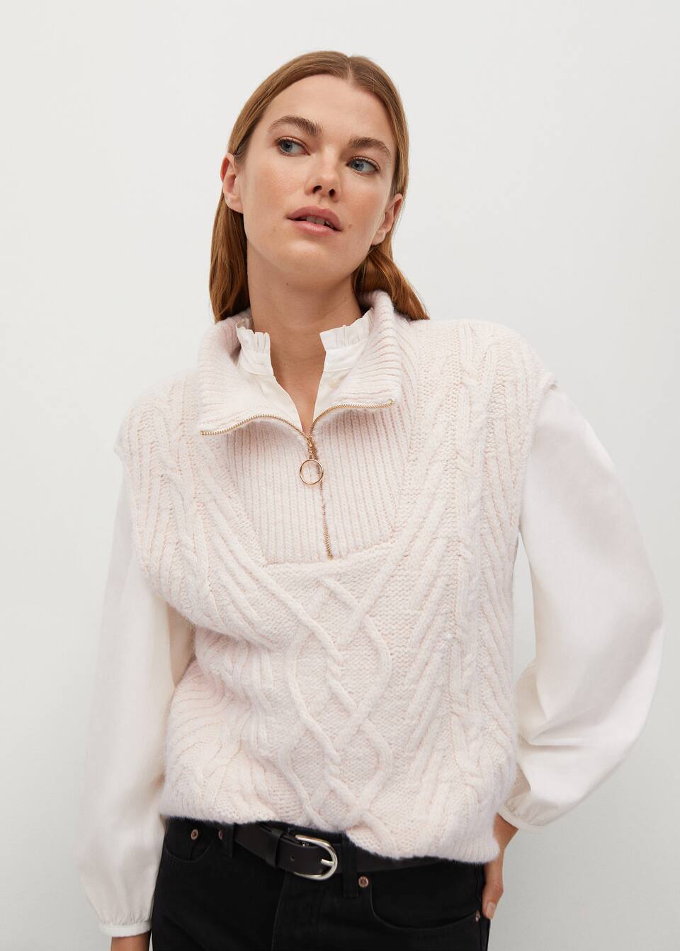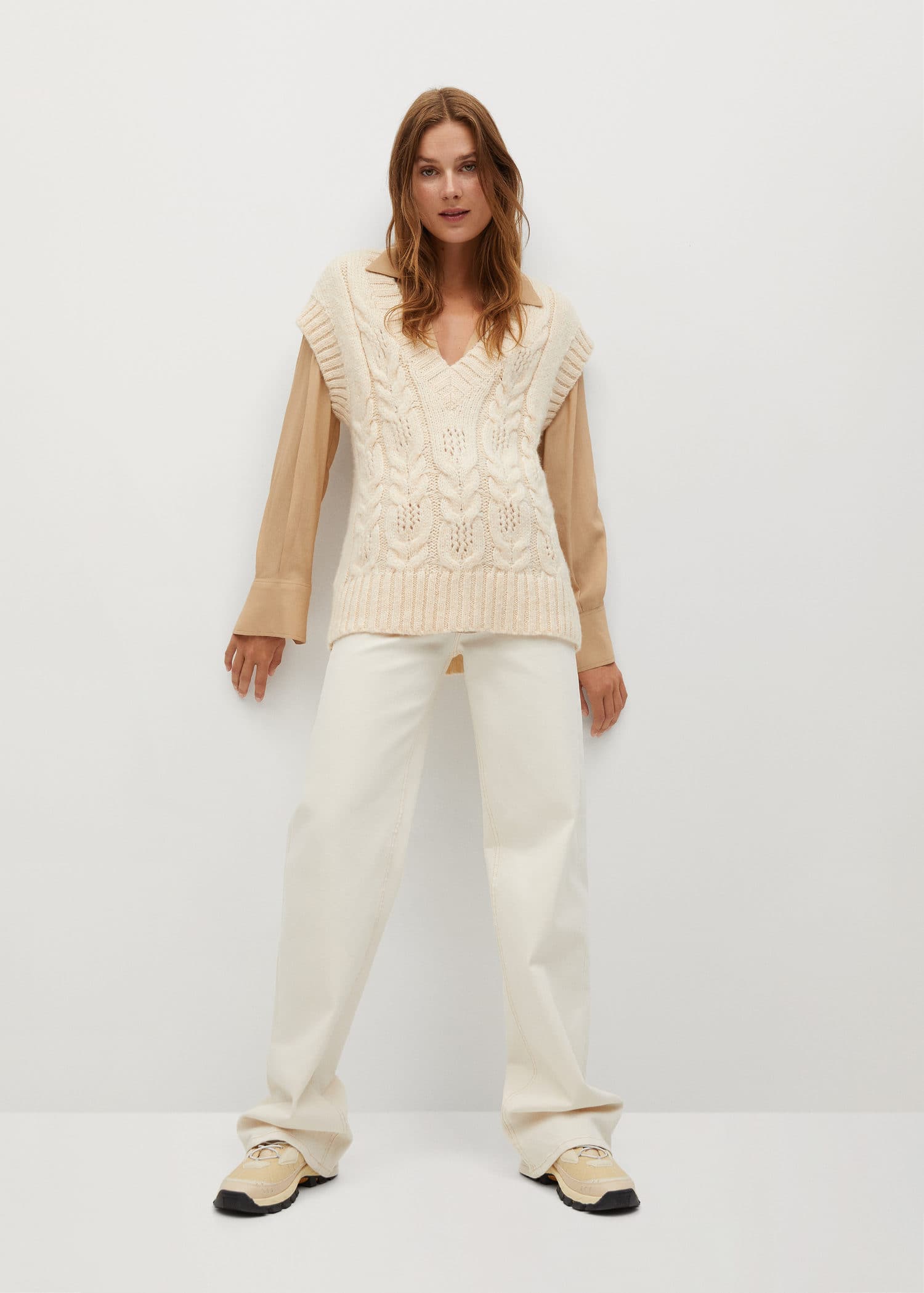Chaleco Punto Cuello Vuelto Mujer Mango Espana