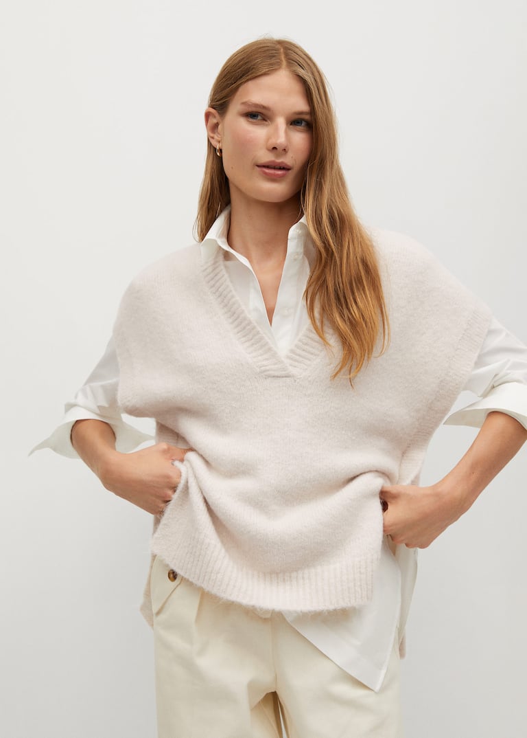 Chaleco Punto Cuello Pico Mujer Mango Espana